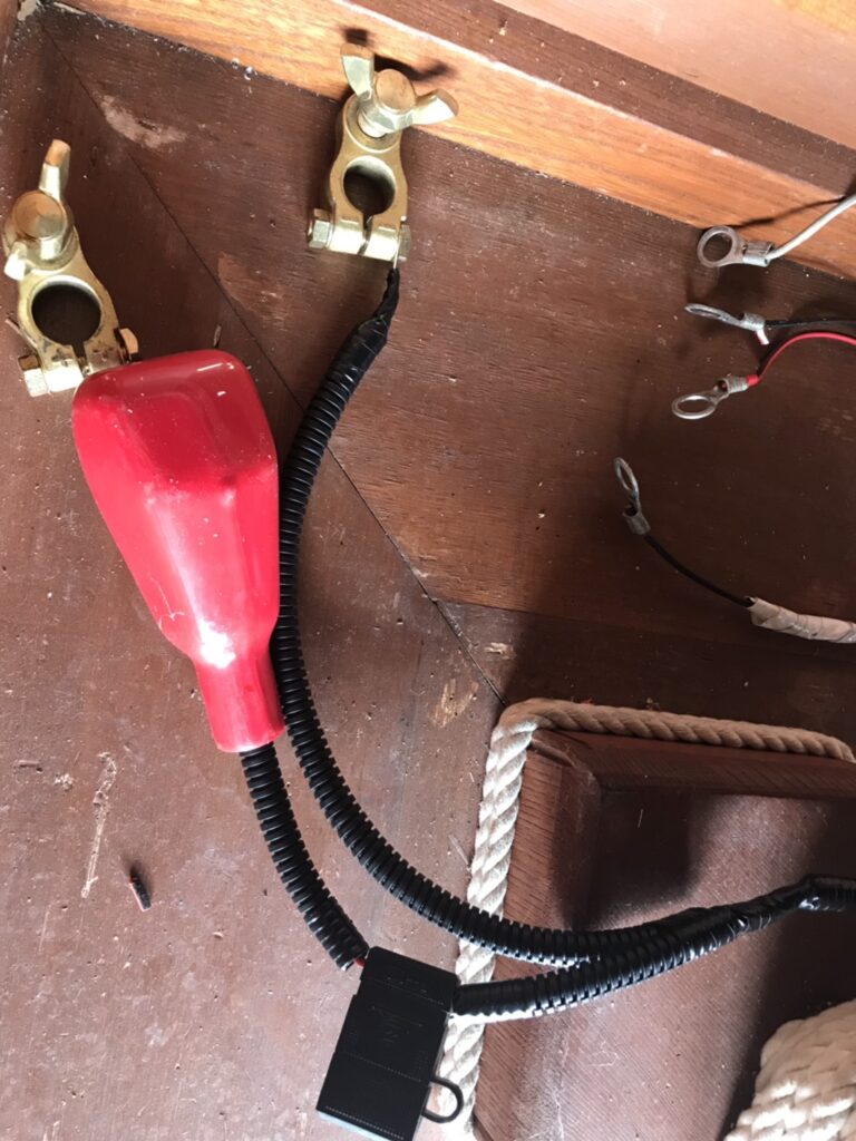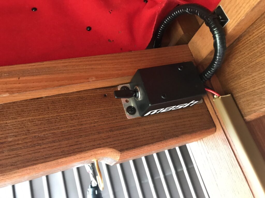 ちょっと変わった作業 お客様の条件①防水②軽バッテリー積むので12V仕様③乗り降りする為配線処理、金具レールの中に引き回し等安全面対策